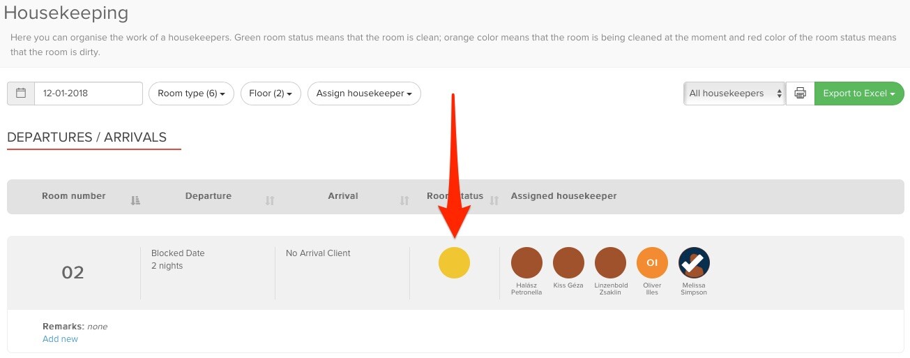 You can create Housekeeper accounts with log-in rights. In this case each housekeeper can log-in at any time of the day and check the rooms that are assigned for them. Moreover, when they start to work, they are able to change the status of the room by changing the colour of the bubble from red (room is dirty) to yellow (rooms is being cleaned).
