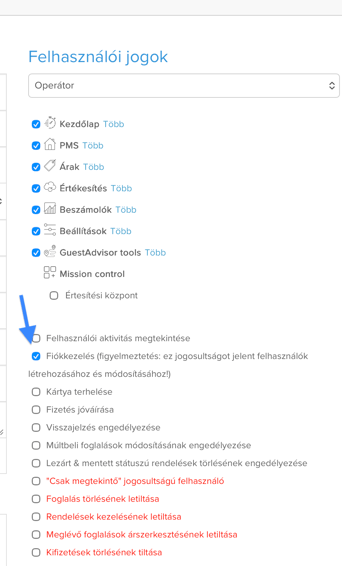 - Fiókkezelők (olyan operátorok, akik rendelkeznek fiókkezelési jogosultsággal, amit a PMS-ben állítanak be)
