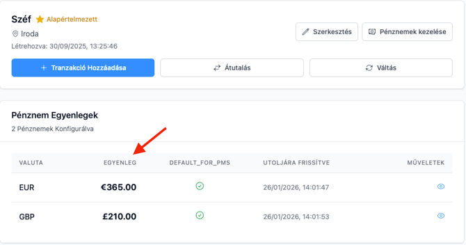 - Minden pénznem külön egyenlegként jelenik meg