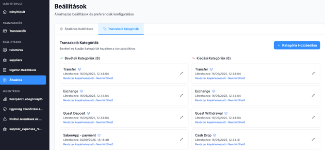 - Lépj a Beállítások → Általános → Tranzakciós kategóriák menübe