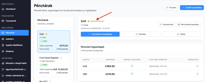 Ha több pénztárad van, egyet beállíthatsz alapértelmezettként: