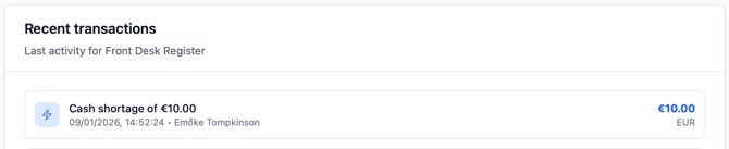Eltérés rögzítése – Válaszd ezt, ha korrigálni szeretnéd az eltérést hiányzó készpénz hozzáadásával vagy többlet eltávolításával. Egy felugró ablak jelenik meg, ahol az eltérés összege előre ki van töltve, valamint egy megjegyzés, például:
