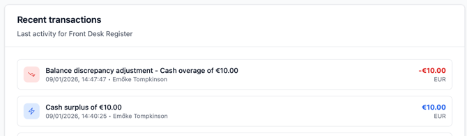 Ez a művelet két tranzakciós bejegyzést hoz létre, amelyek együtt visszaállítják a pénztárfiók egyensúlyát.