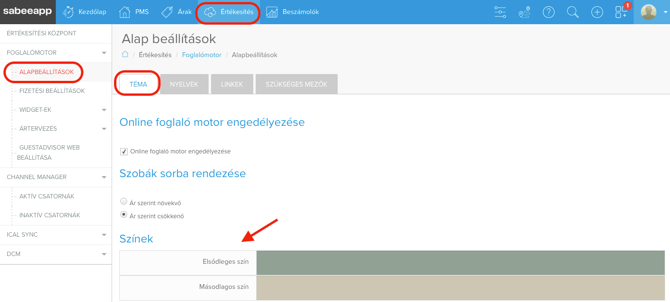 Menj ide: Értékesítés → Foglalómotor → Alapbeállítások → Téma