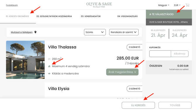 Ár szerint növekvő– a legolcsóbb szobák jelennek meg először