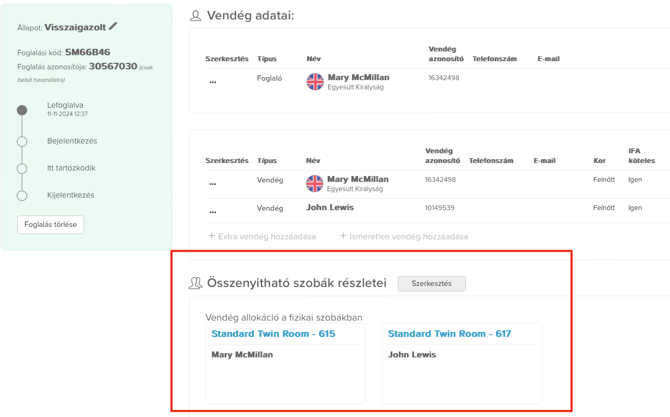 - Ha az extra vendégprofil adatai valódi vendégadatokra frissülnek, ez az Összenyitható szobák részletei szakaszban is tükröződik.