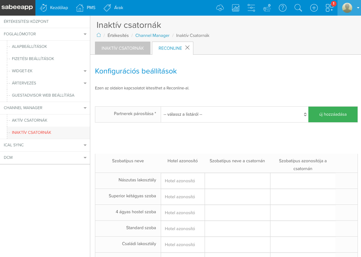 👉 Add hozzá a SabeeAppot Channel Manager szolgáltatóként a Reconline extranet felületén.