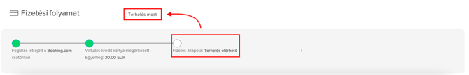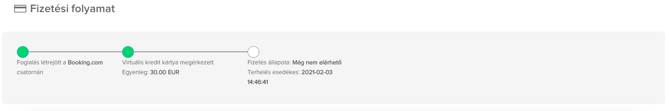 Miután a Virtuális Bankkártya (VCC) megérkezett a foglaláshoz ez a lépés is zöld jelzést kap majd. Közvetlenül az ikon alatt feltüntetjük a kártya egyenlegét valamint pénznemét is.