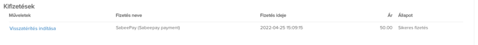 Információk a visszatérítés részleteiről ezen a cikken található: Visszatérítés kezelése SabeePay-es fizetés esetén