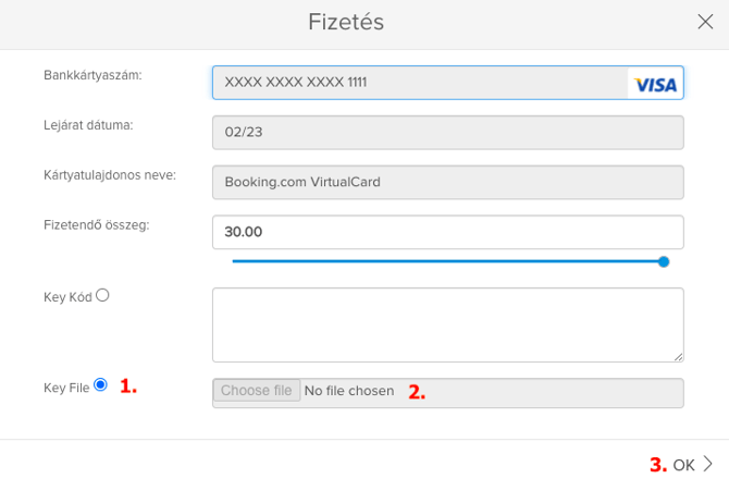 Ezzel a fizetési folyamat lezárult. Amennyiben további fennmaradó összeg keletkezne, azt a vendég a helyszínen tudja majd kifizetni.