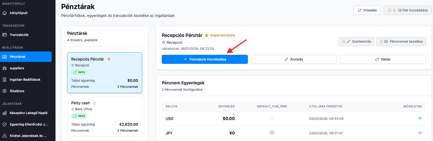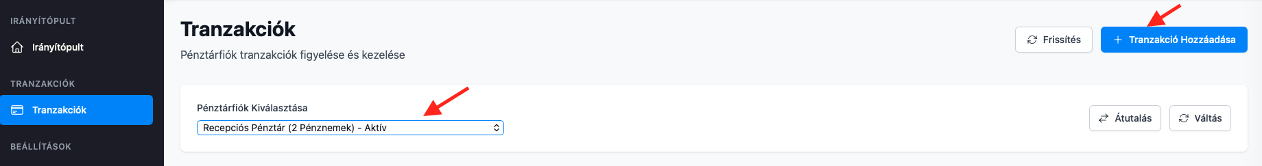 Lépj a Tranzakciók menübe, majd válassz egy pénztárt