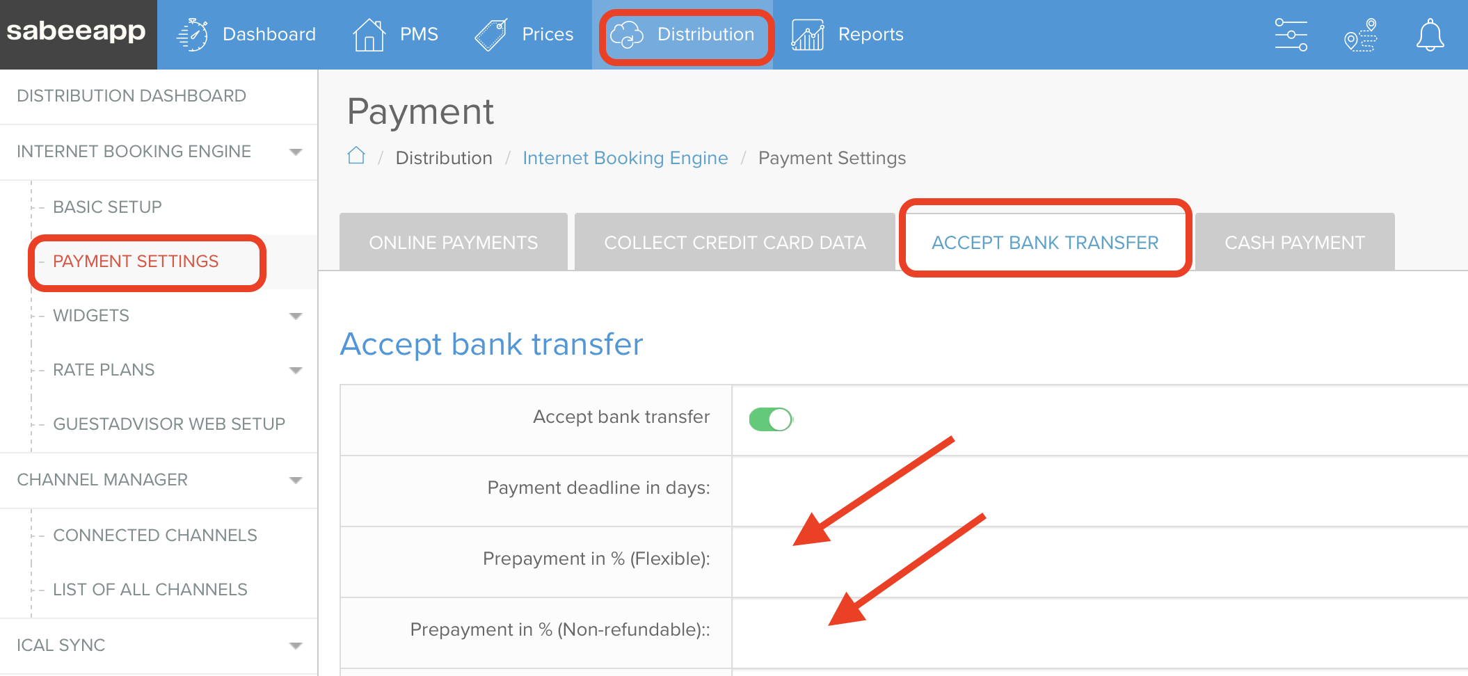 Distribution → Internet Booking Engine → Payment Settings