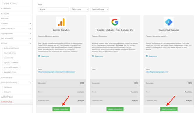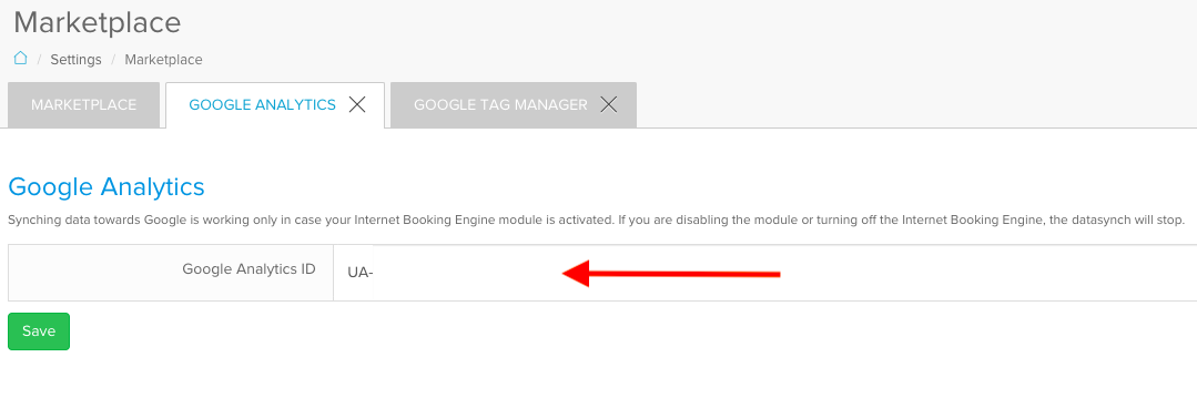 Once you have successfully connected Google Analytics and Google Tag Manager in the SabeeApp Marketplace, please inform your account manager so they can add any required custom scripts or tracking codes to your Booking Engine or confirmation page.