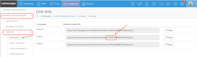 ?p= To get the link go to your SabeeApp Account - Distribution - Internet Booking Engine - Widgets - Link Only. Please make sure to copy the part of the Booking Engine link starting from "?p=" and the following 8 characters.