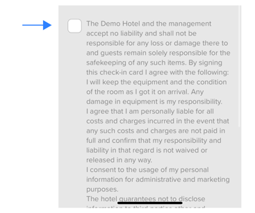 - Before finishing your check-in, tick the box to accept the hotel's terms and conditions.