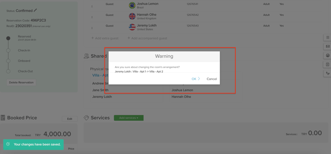 - Any changes made to the guest profile arrangement are logged in the Change Log for easy tracking and auditing.