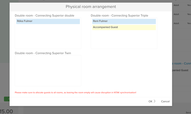 - If the reservation includes "Accompanied Guest" profiles, these will be automatically allocated to physical units, primarily due to NTAK synchronization requirements.