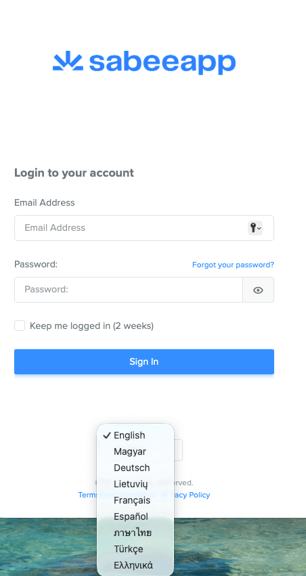 - Login Page – Choose the language for SabeeApp’s menus before you log in.