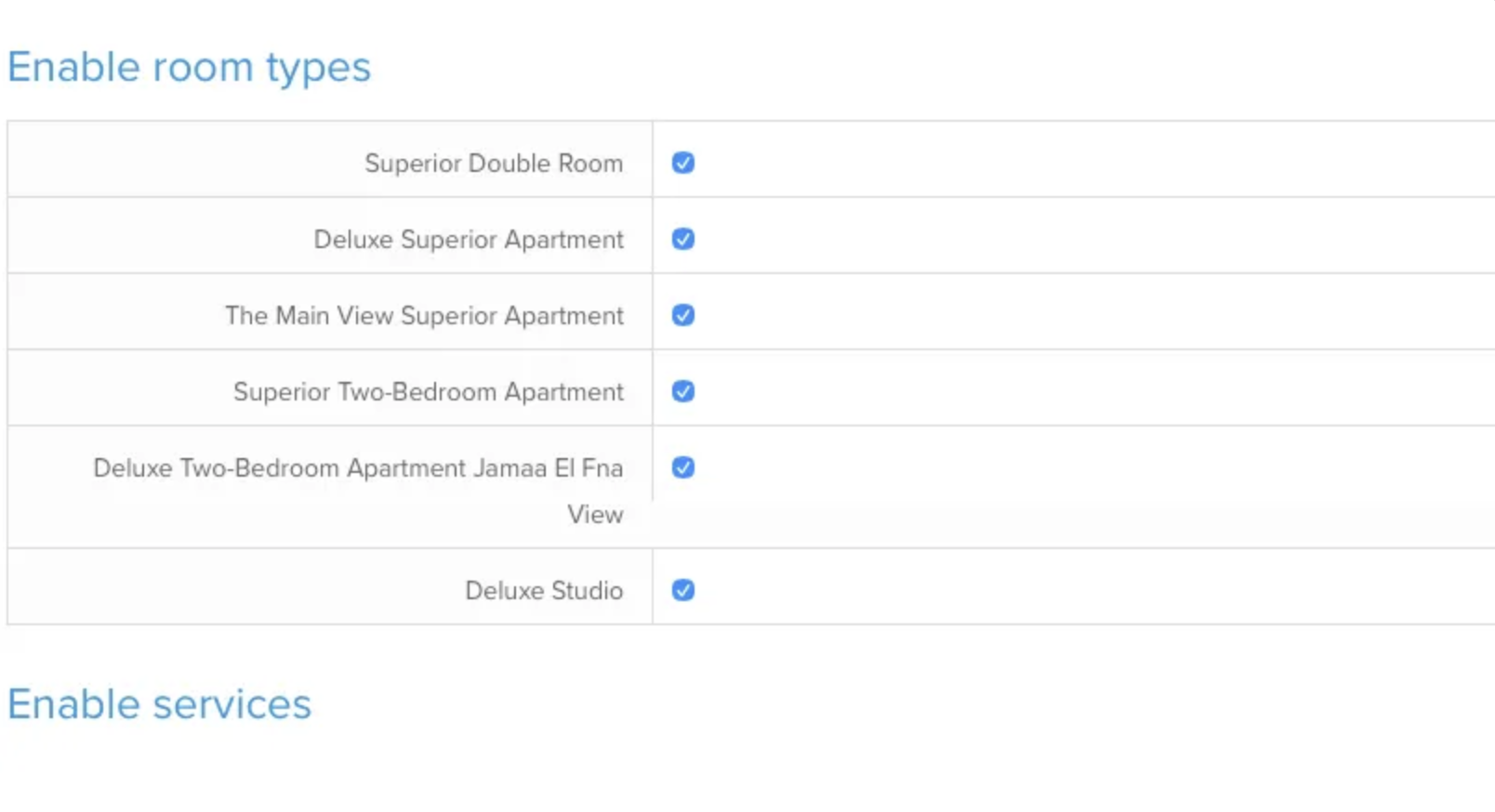 - Choose which room types and services you want SabeeApp to synchronise with Bakuun.