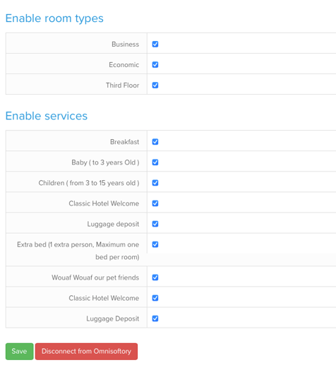 5. Choose the rooms, and services you want SabeeApp to sync with Omnisoftory.