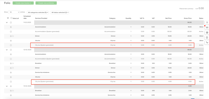 - Apply new prices: Updates both the room price and city tax. “System generated” items may be created for billed accommodation.
