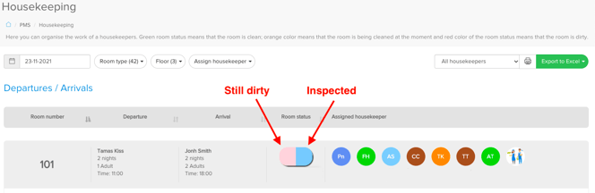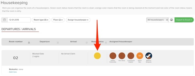 You can create Housekeeper accounts with log-in rights. In this case each housekeeper can log-in at any time of the day and check the rooms that are assigned for them. Moreover, when they start to work, they are able to change the status of the room by changing the colour of the bubble from red (room is dirty) to yellow (rooms is being cleaned).