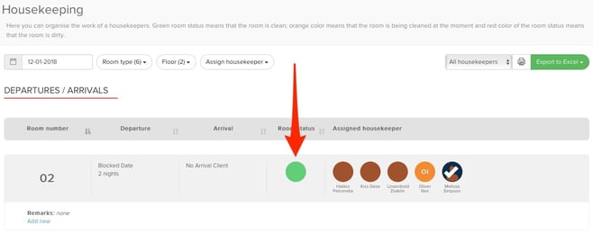 When a housekeeper is ready with a room, she can mark it in the system by changing the bubble of the room status to green (room is clean).