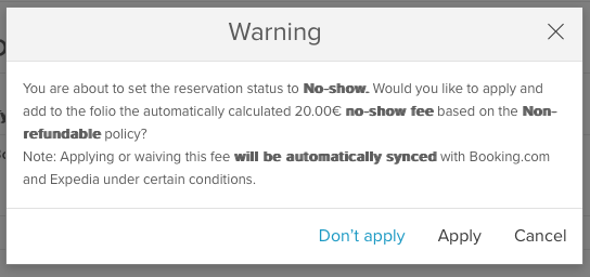 - Apply: The no-show fees are applied and will be communicated to Booking.com.