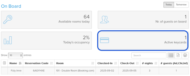 To see how many key cards are currently active: