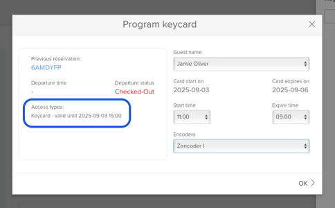 - Check the departing-guest panel to see the previous cardâs valid-until time.