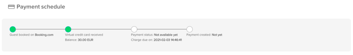 When a reservation is created and received in SabeeApp, the system automatically checks if a Virtual Credit Card (VCC) is assigned to the reservation. If a VCC is detected, the following stages will appear under the Payment Schedule section of the Detailed Reservation page: