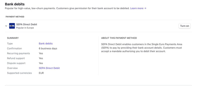 The SEPA payment notification cannot be activated if the SEPA Payment method toggle is not active.