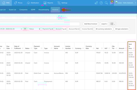 - once the invoice is set to " Paid ", the " Sent to Xero " column in PMS / Invoices menu will be populated with the date & time when the invoice was sent to xero
