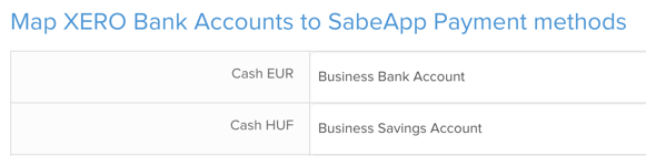 As the last step map XERO Bank Accounts to SabeApp Payment methods.