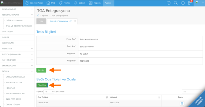 TGA Entegrasyonu – Misafir ve Gelir Verilerinin Turizm Bakanlığına Gönderimi