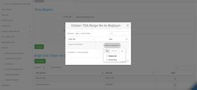 Birden fazla belge numarası ekleyerek, farklı odaları farklı belge numaraları ile eşleştirebilirsiniz.