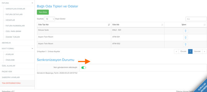 4. Senkronizasyon Durumunu Etkinleştir:En az 1 oda bağladıktan ve kontrol ettikten sonra “Veri gönderimini etkinleştir” butonunu aktif edin.